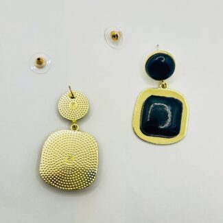 70s Inspired Gold Alloy Drop Earrings with Black Acrylic Stones