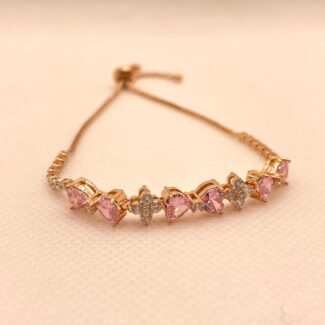 Gold stainless steel, box chain, adjustable bracelet. With white/clear and baby pink coloured glass stones.
