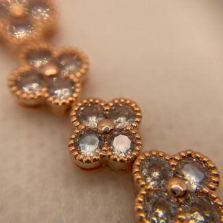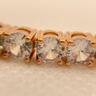 Rose-Gold stainless steel, tennis bracelet with clear glass stones. 17.8 cm length, 0.7 cm width.