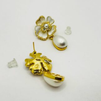 Gold alloy Hook Earrings with Large Synthetic White Pearls