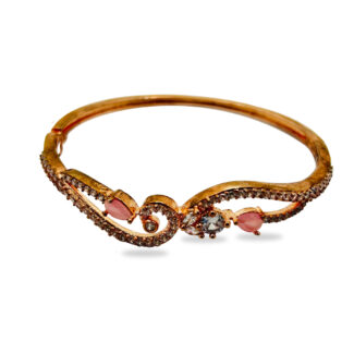 Rose-Gold metal Swirling patterned Hinged Bracelet with pink and clear glass stones.