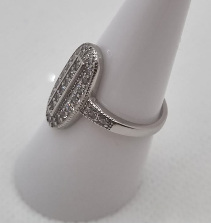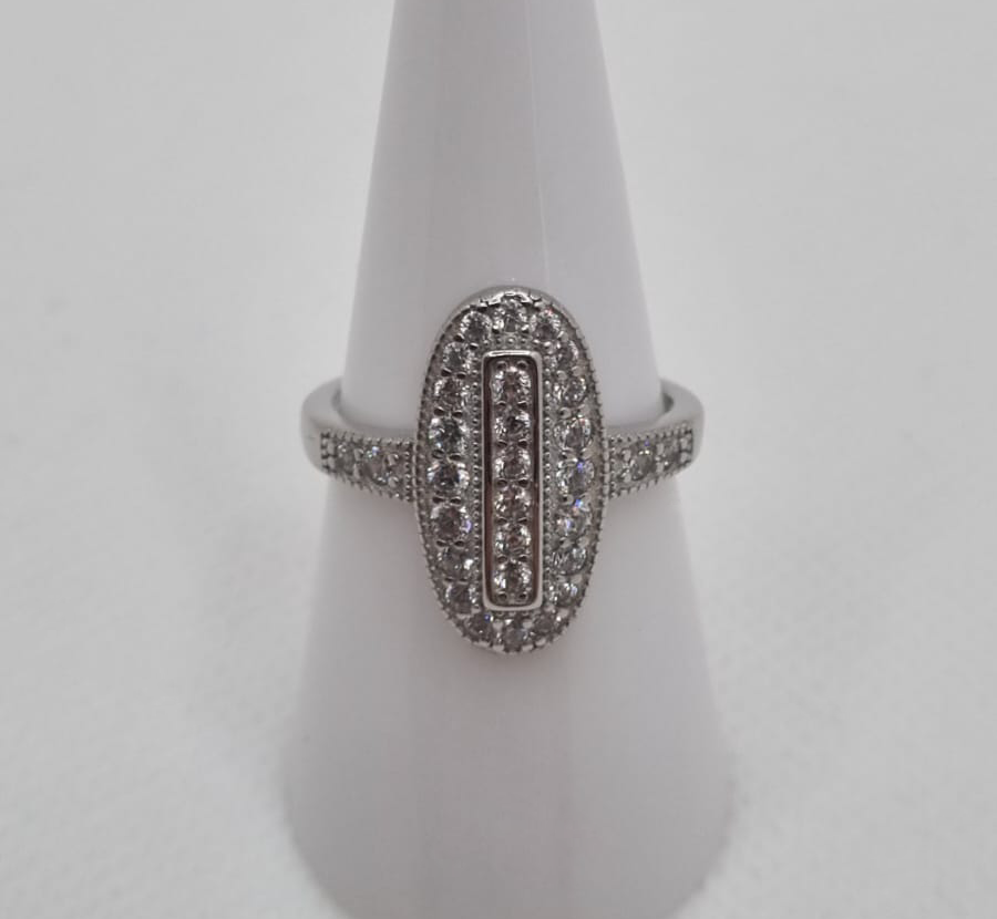 Stamped 925 sterling silver statement ring, with clear garnet stones.