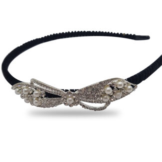 Black Velvet And Silver Bow Design Head Band