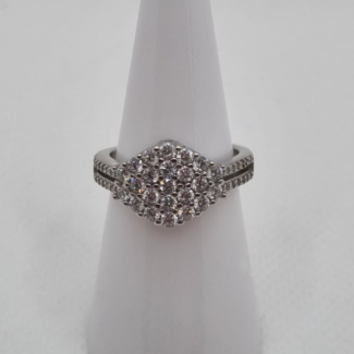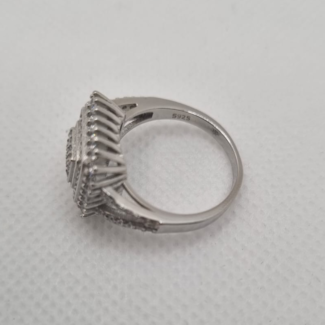 Stamped 925 sterling silver statement ring, with clear garnet stones.