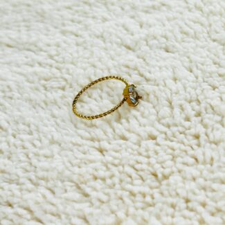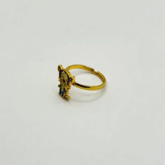 TIERED PETAL SQUARE FLOWER WITH SINGLE PINK STONE ADJUSTABLE RING