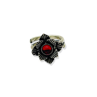 TIERED PETAL SQUARE FLOWER OXIDIZED ADJUSTABLE RING