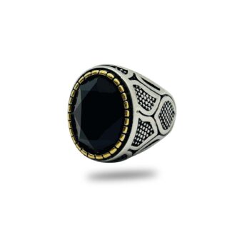 Men’s Black Stone Large Stainless Steel Metal Ring