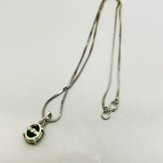 Silver Alloy, Classic Single Green Glass Stone Pendant Necklace. 44cm length