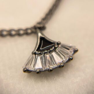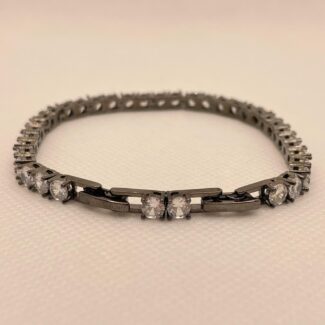 Gun metal grey stainless steel, single row clear glass stone, tennis style bracelet. 15.5 cm length, 4 mm width, with a 2 cm extender included