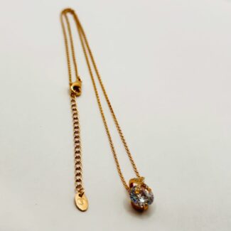 Rose Gold Stainless Steel with Clear Glass Stones Necklace, Adjustable Length. 46.5cm max length, 40cm minimum length.