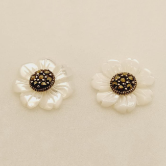 Sterling Silver Stud with Andradite Garnet Stones, with Synthetic Pearl Removeable Daisy Flower Petal Halo