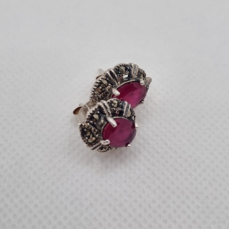 Sterling silver stud earrings, with andradite halo, around a Pink Almandine garnet.