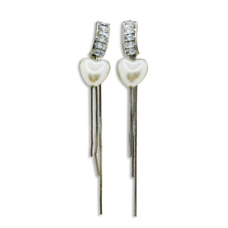 Silver Pearl Heart Soft Chain Detail Drop Earring