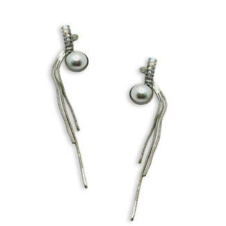 Silver Tri Chain Dangle with White Pearl Drop Earring