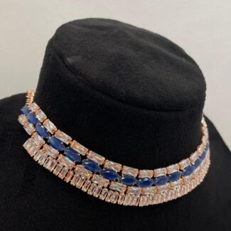 Rose-Gold Blue Oval Collar Style Statement Necklace Set